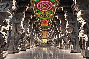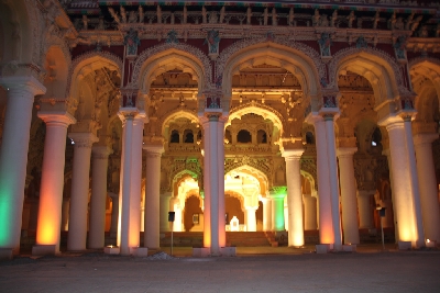 Thirumalai Nayak Palace is a 17th-century palace erected in 1636 AD by King Thirumalai Nayak, a king of Madurai's Nayaka dynasty who ruled Madurai from 1623–59, in the city of Madurai, India. This Palace is a classic fusion of Dravidian and Islamic styles. The building, which can be seen today, was the main Palace, in which the king lived. The original Palace Complex was four times bigger than the present structure. In its heyday, Tirumalai Nayak Palace at Madurai was considered to be one of the wonders of the South. This palace is situated 2 km south east of the Meenakshi Amman Temple.